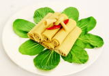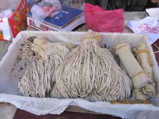 京都の湯葉料理が有名だが、中国では新鮮な湯葉ではなくパリパリ乾燥したものが多い。形が干した竹と似てることから「腐竹」(fu三声 zhu二声)と名付けられています。濃厚な風味で長く保存できることが特徴的です。水で柔らかく戻し、煮込み料理や冷菜に入れます。