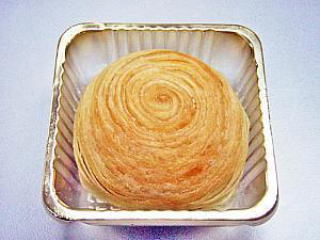 潮州は福建省の地名である。同じ焼き菓子スタイルでも広東スタイルとはまったく違うルックス。外皮は渦巻きで何層にもなったパイスタイル。表面も丸く盛り上がっている。潮州月餅のファンも結構多いよ。